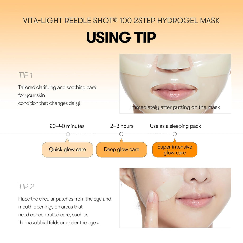 VT COSMETICS Vita-Light Reedle Shot 100 2-Step Hydrogel Mask(34.5gx4ea), Intensive Glowing, Exosome Glutathione Face Mask, Clear & Even Skin Tone, Overnight Melting Mask, Korean Facial Mask