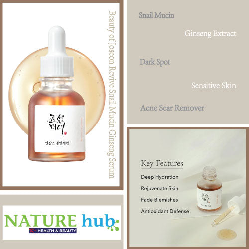 Revitalize Your Skin: Beauty of Joseon Revive Serum Ginseng+Snail Mucin combines snail mucin and ginseng for a powerful skincare experience.