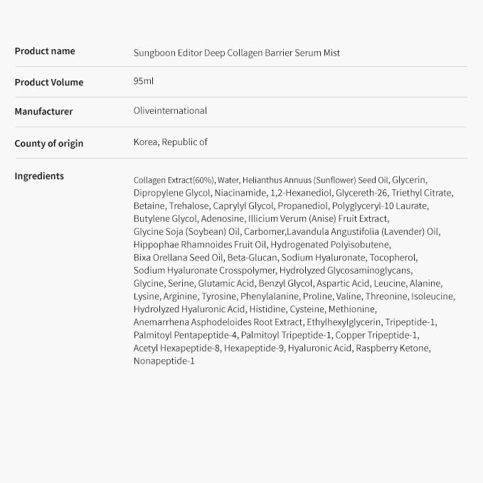 SUNGBOON EDITOR Deep Collagen Barrier Serum Mist