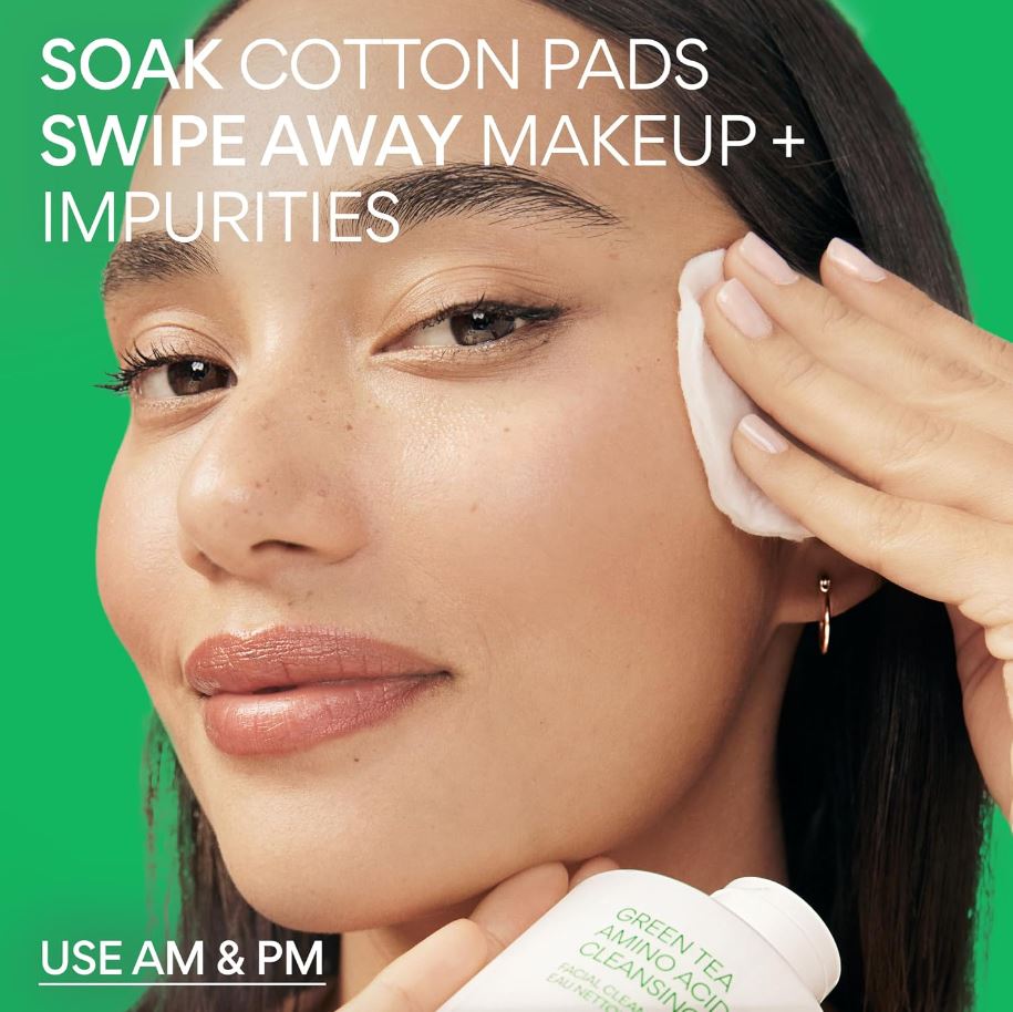 This dermatologically tested, low pH micellar cleansing water helps gently cleanse and wipe away makeup in just one swipe. Green Tea Water + Amino Acid Complex help deeply hydrate without over-stripping for a refreshed and clean feeling.
