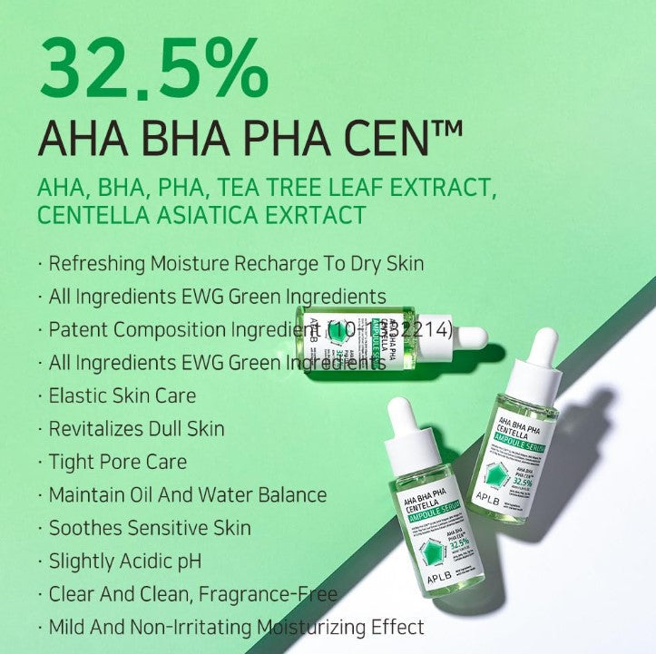 A serum contains 32.5% AHA BHA PHA CEN that refreshing moisture recharge to dry skin.