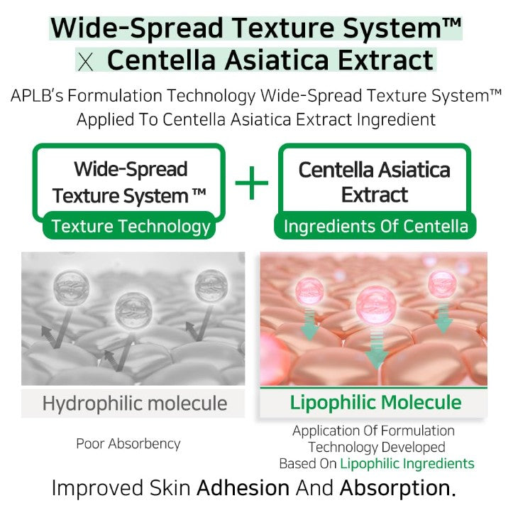 APLB¡¯s fomulation technology wide-spread texture system applied to Centella Asiatica Extract Ingredient improves skin adhesion and absorption.