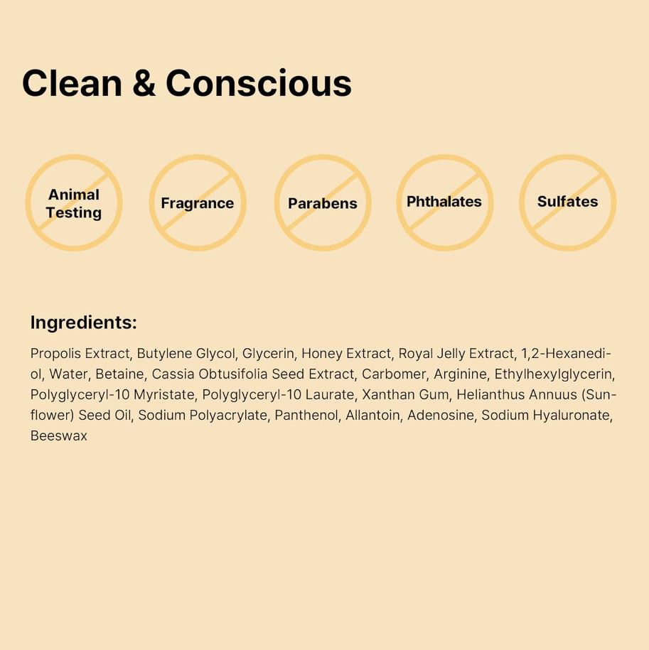 87.26% of Propolis Extract | Reduces redness and helps the healing process of stressed skin.