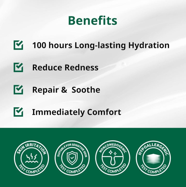 It contains cica complex, which can effectively calm skin hotness and redness, and replenish water for skin
