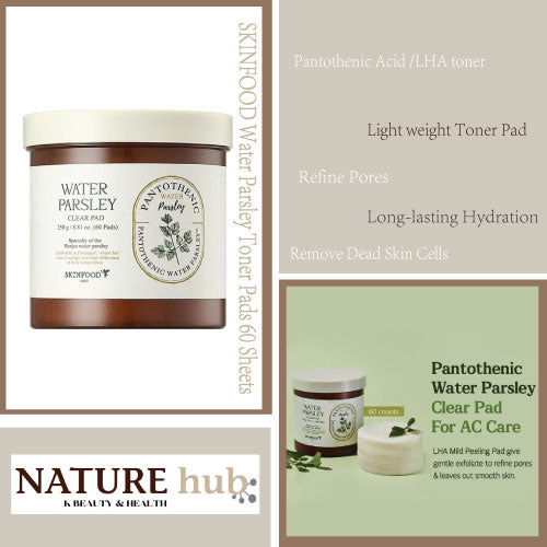 ?What is it? The Skinfood Pantothenic Water Parsley Clear Pads are trouble care toner pad. It removes excess sebum and dead skin cells while calming irritated skin with parsley for clear skin. A quick & easy daily toner pad for gentle exfoliation and moisturization without irritation. As a top choice in Korean skincare, it provides convenience with high-performance care, making it an essential part of your daily skincare routine. SKINFOOD Pantothenic Water Parsley Clear Pad provide higher adhesion, making it convenient to apply on a facial sheet mask.