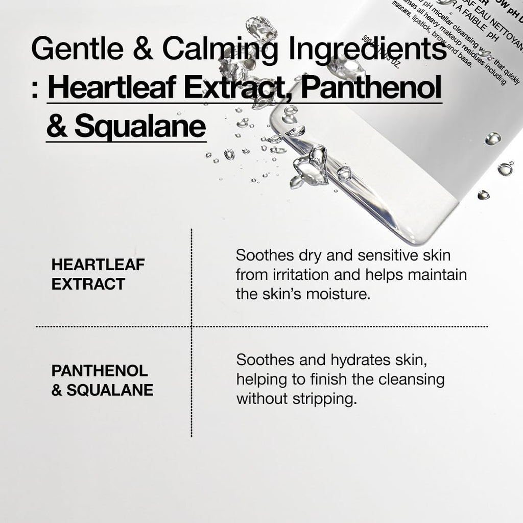 SOOTHES AND HYDRATES SKIN : Contains Heartleaf Extract, Panthenol and Squalane to soothe dry and sensitive skin from irritation. They help to finish the cleansing without stripping.