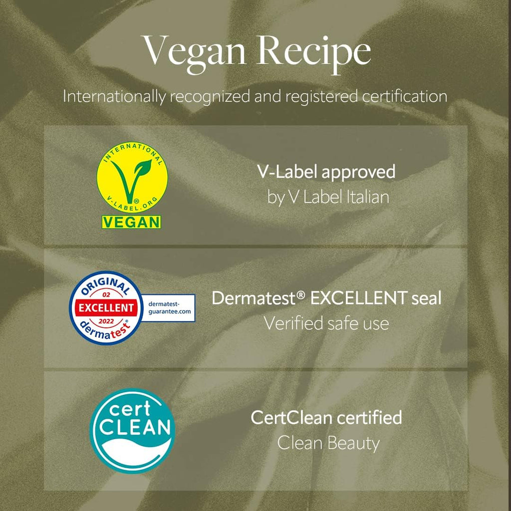 Certified Vegan after meticulous testing by Italian V-label, Dermatest approved at excellent level, and CertClean certified for clean formula.