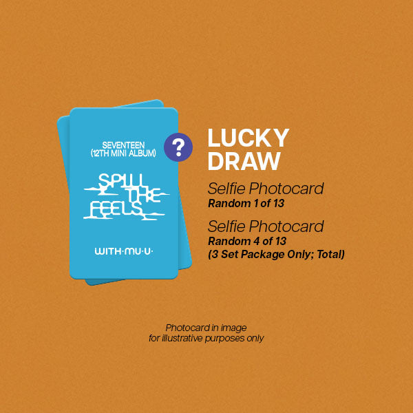 • Selfie Photocard: Random 4 of 13 (3 Set Package Only; Total - Withmuu Lucky Draw Only)