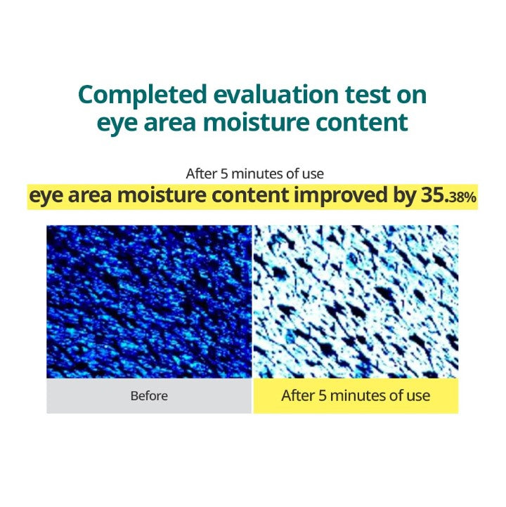 Completed evaluation test on eye area moisture content After 5 minutes of use, eye acrea moisutre content improved by 35.38%