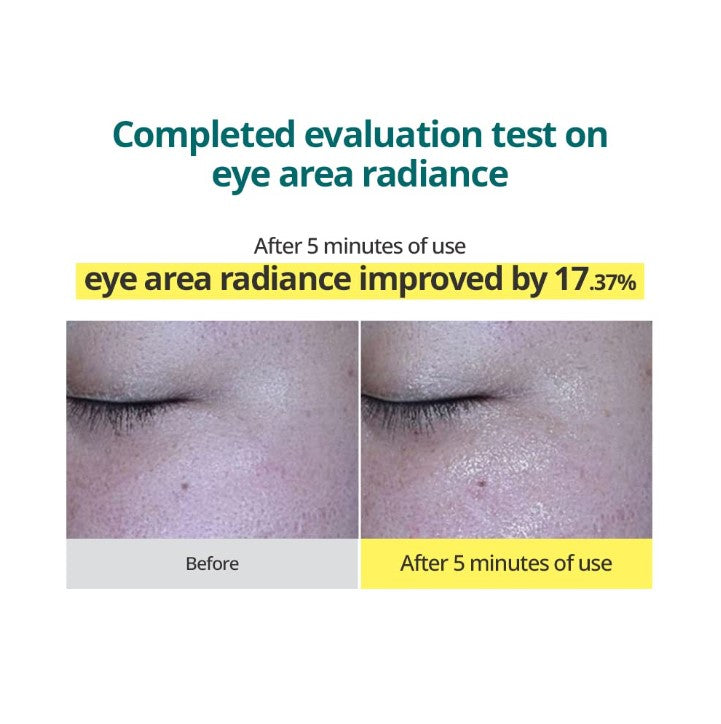 Completed evaluation test on eye area radiance After 5 minutes of use, eye area radiance improved by 17.37%